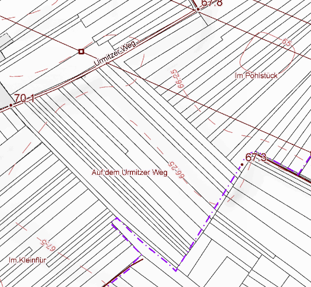Wahrscheinlich: Parzellen entlang der alten Straße Richtung Kärlich.