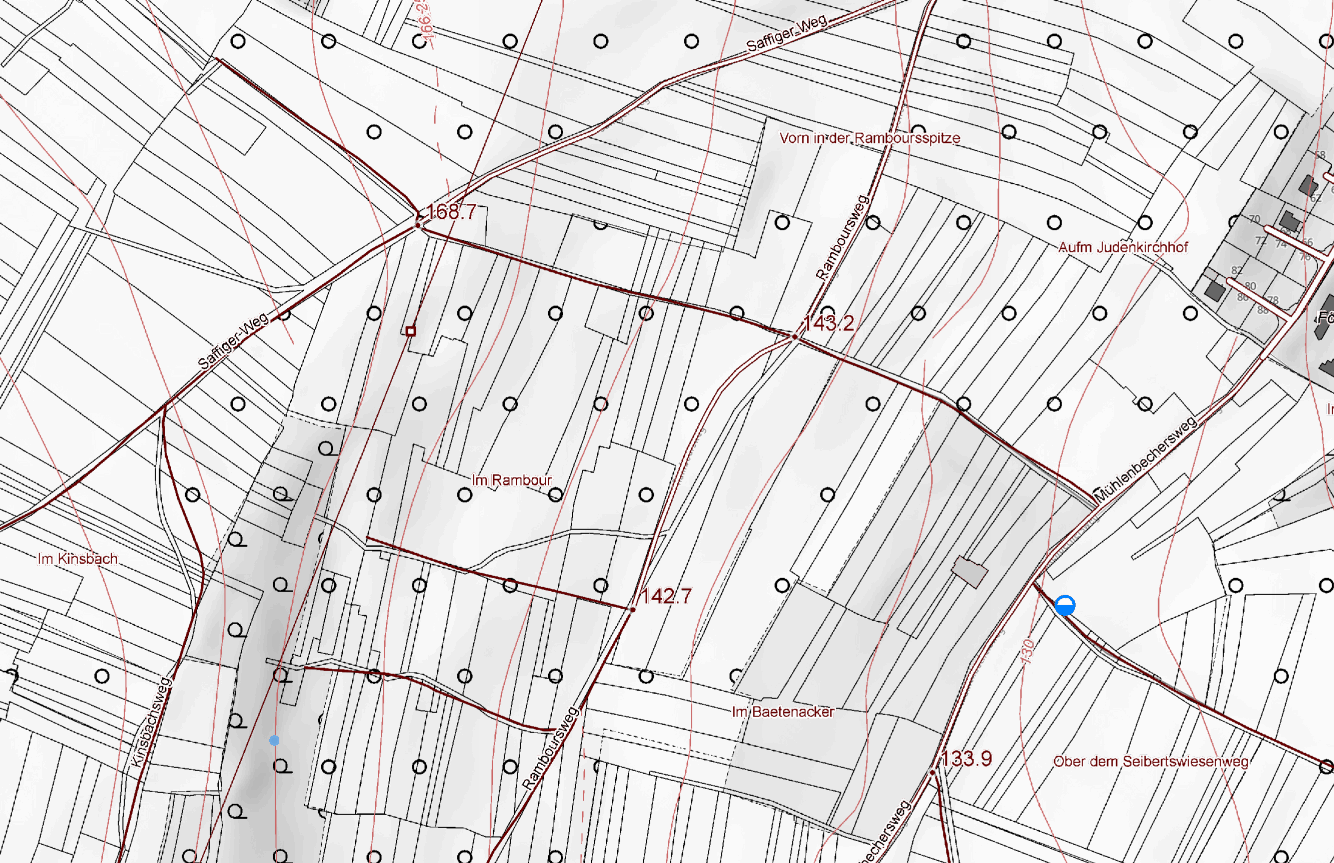 Flur VI liegt in einem landschaftlich vielfältigen Abschnitt der Kettiger Gemarkung. Zwischen Saffigerberg, Kinsbach und Rambour treffen hier alte Ackerstücke, Bachläufe und Hanglagen aufeinander. Die Flurnamen dieser Gegend bewahren Erinnerungen an traditionelle Nutzungsformen und an markante Geländepunkte, die das Landschaftsbild bis heute prägen.