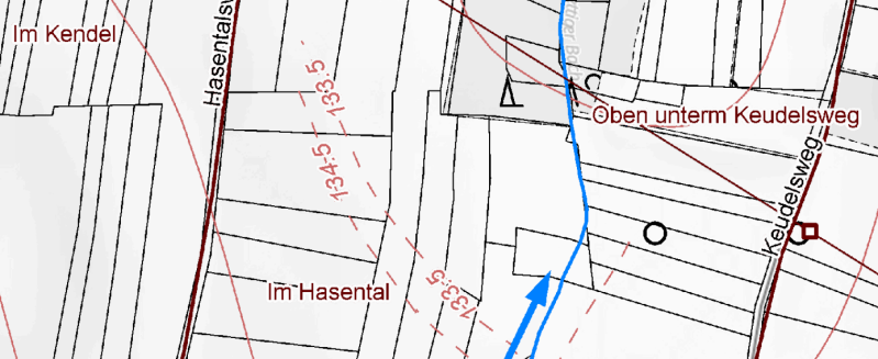 „Keudelsweg“ ist ein alter Wegname innerhalb der Flur.