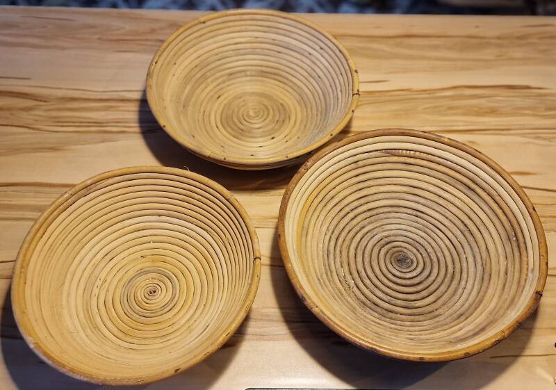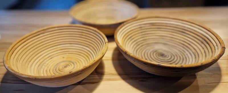 Die Gärkörbchen bestehen aus spiralförmig gewundenen Naturfasern, die zu stabilen, luftdurchlässigen Körben geformt wurden.