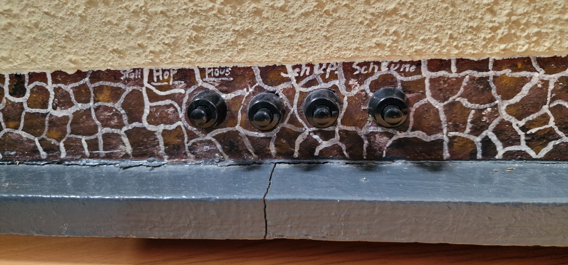Die Bauweise, das massive Holz und die individuellen Proportionen sprechen stark für eine handgefertigte Einzelanfertigung, vermutlich durch einen Dorfschreiner oder Hobby-Handwerker aus Kettig oder der Umgebung. Alternativ käme auch ein kleiner regionaler Spielzeugmacher infrage, doch der Hof wirkt nicht wie ein Serienprodukt, sondern wie ein Unikat mit persönlicher Geschichte.