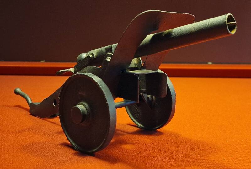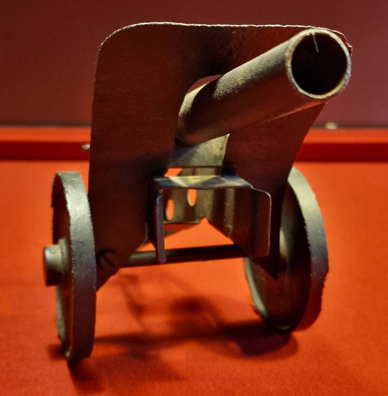 Dieses Objekt ist ein massiv aus Stahl gefertigtes Abschussgerät in der Form einer kleinen Kanone. Mit einer Länge von rund 30 cm und einem vollständig metallenen Aufbau gehört es zu den robusten Jugendknallgeräten des 20. Jahrhunderts, die im ländlichen Raum weit verbreitet waren.