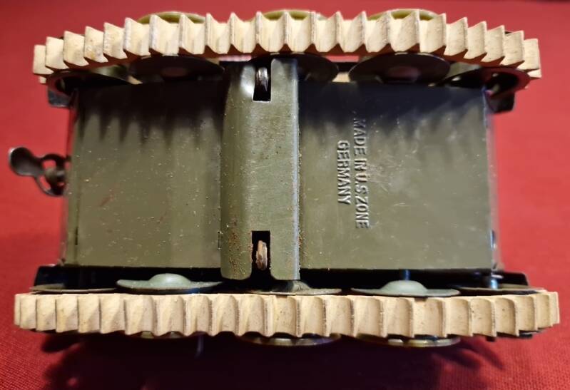 Die Kombination aus U.S.-Zone‑Prägung am Tank und „Western Germany“ auf dem Karton zeigt, dass Tank und Verpackung aus einer Übergangszeit stammen – ein spannender Befund für die Datierung.