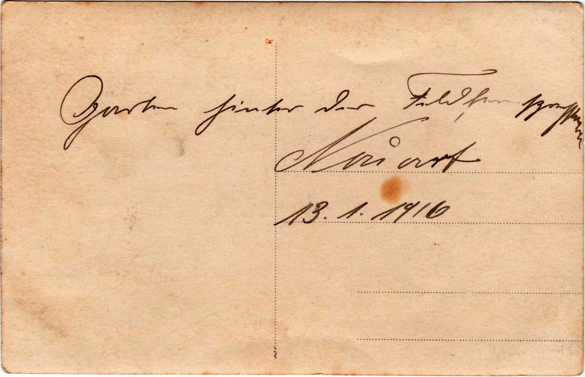 Solche Motive wurden häufig als „Beweisbilder“ verschickt, um den Angehörigen zu zeigen, was an der Front tatsächlich sichtbar war.
