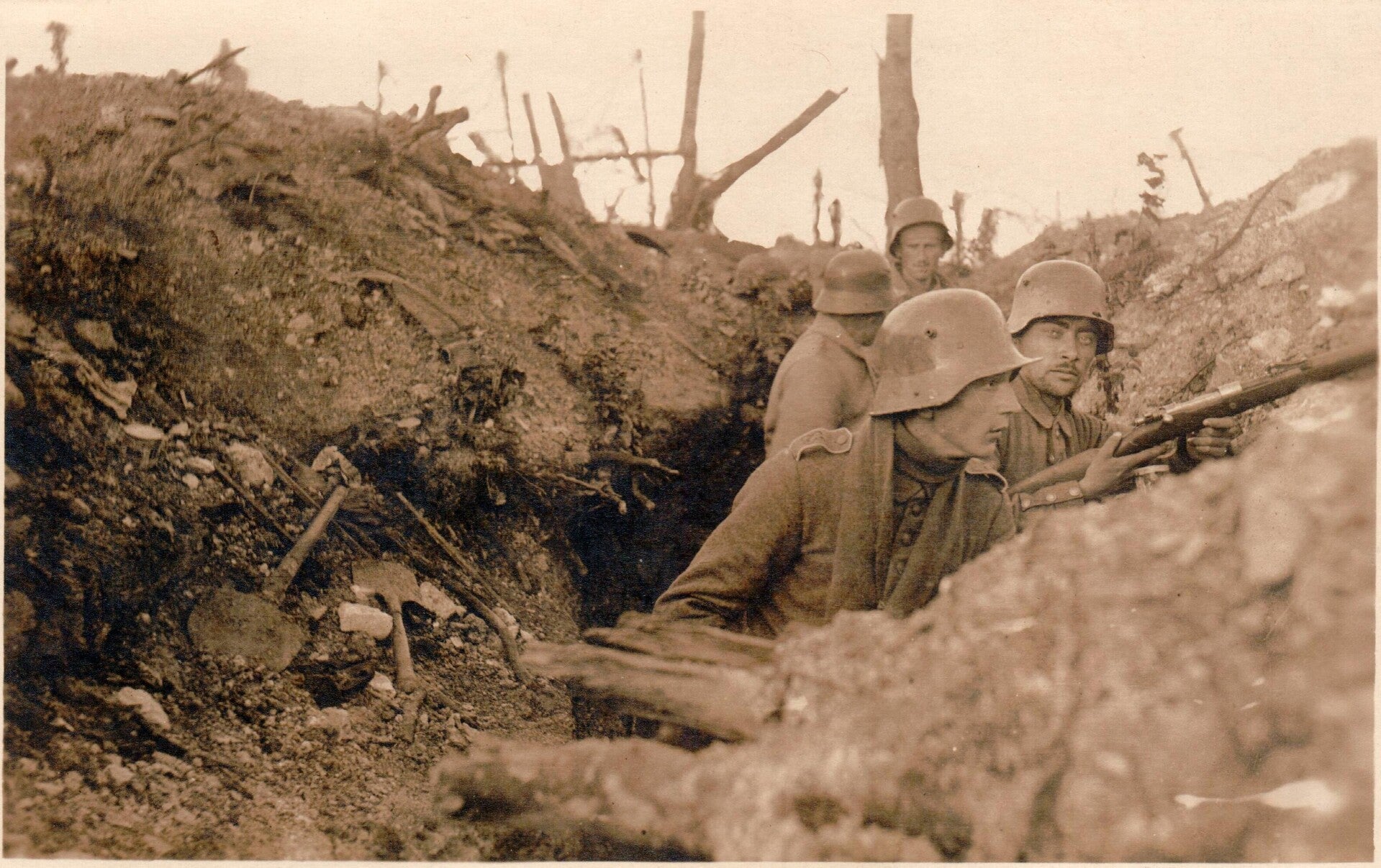 • die zerstörte, kahle Landschaft des Verdun‑Sektors,