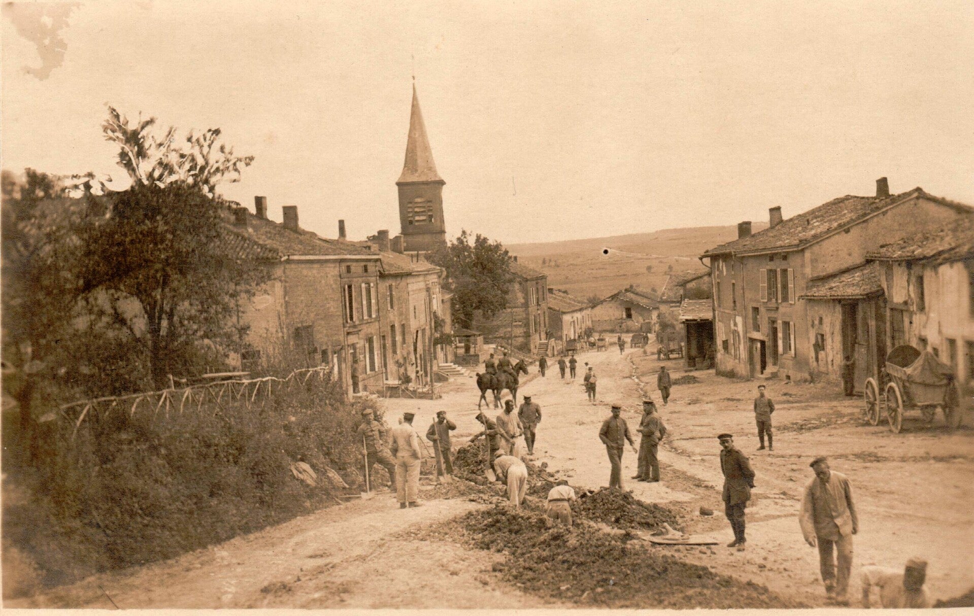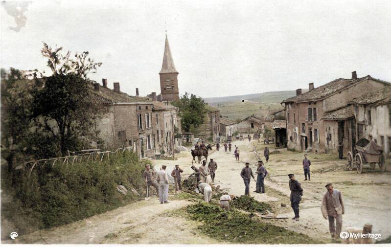 Die vierte Karte zeigt eine Straßenszene eines französischen Ortes, vermutlich Worville (heute: möglicherweise Vauquois, Wavrille oder ein ähnlich klingender Ort im Verdun‑Sektor).
