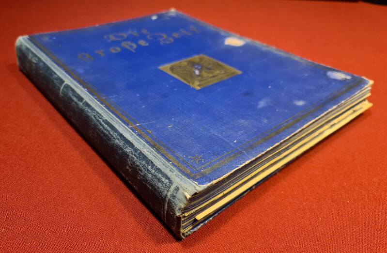 • kräftiger blauer Leineneinband