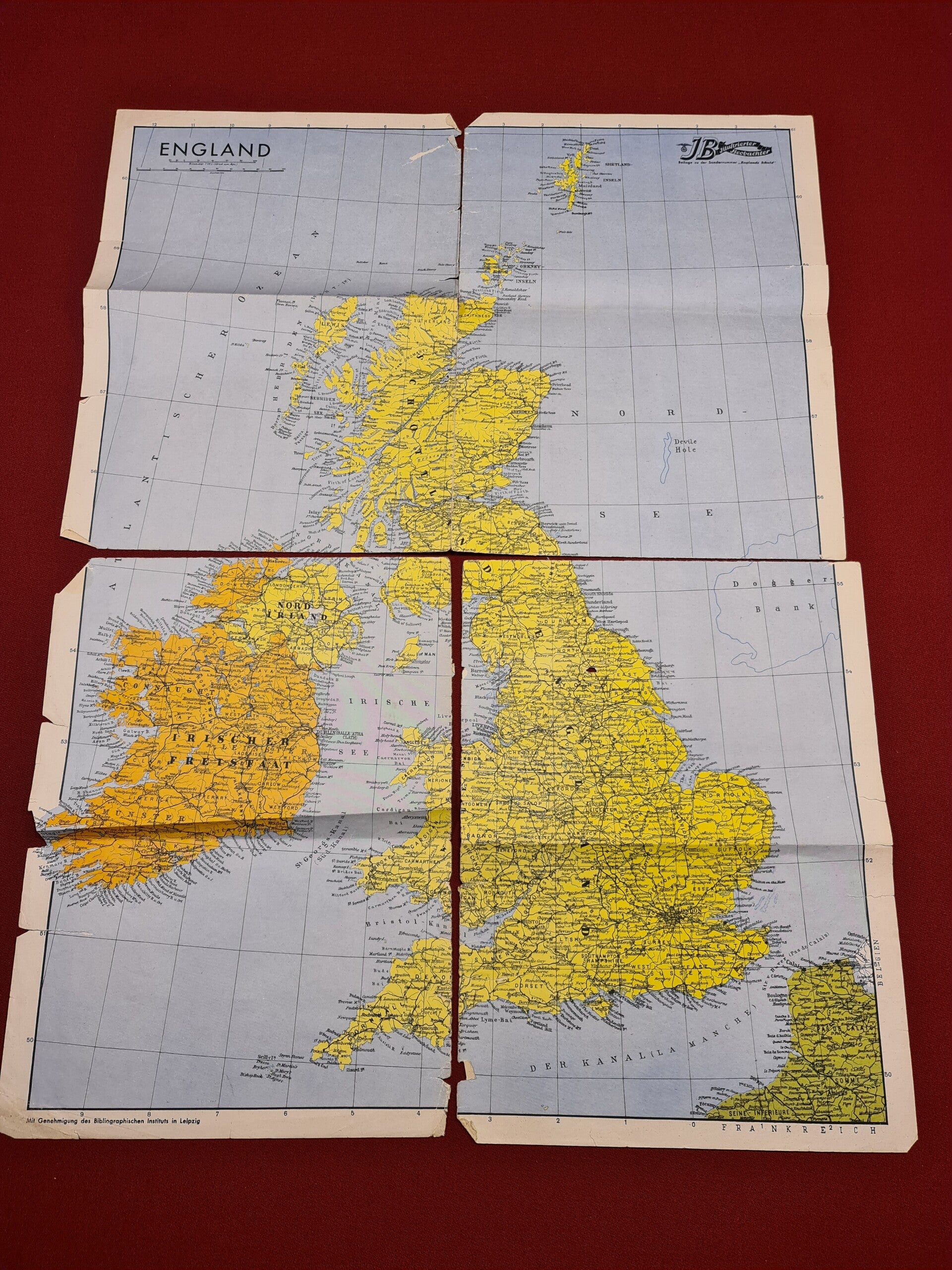 Die vier Karten zeigen: