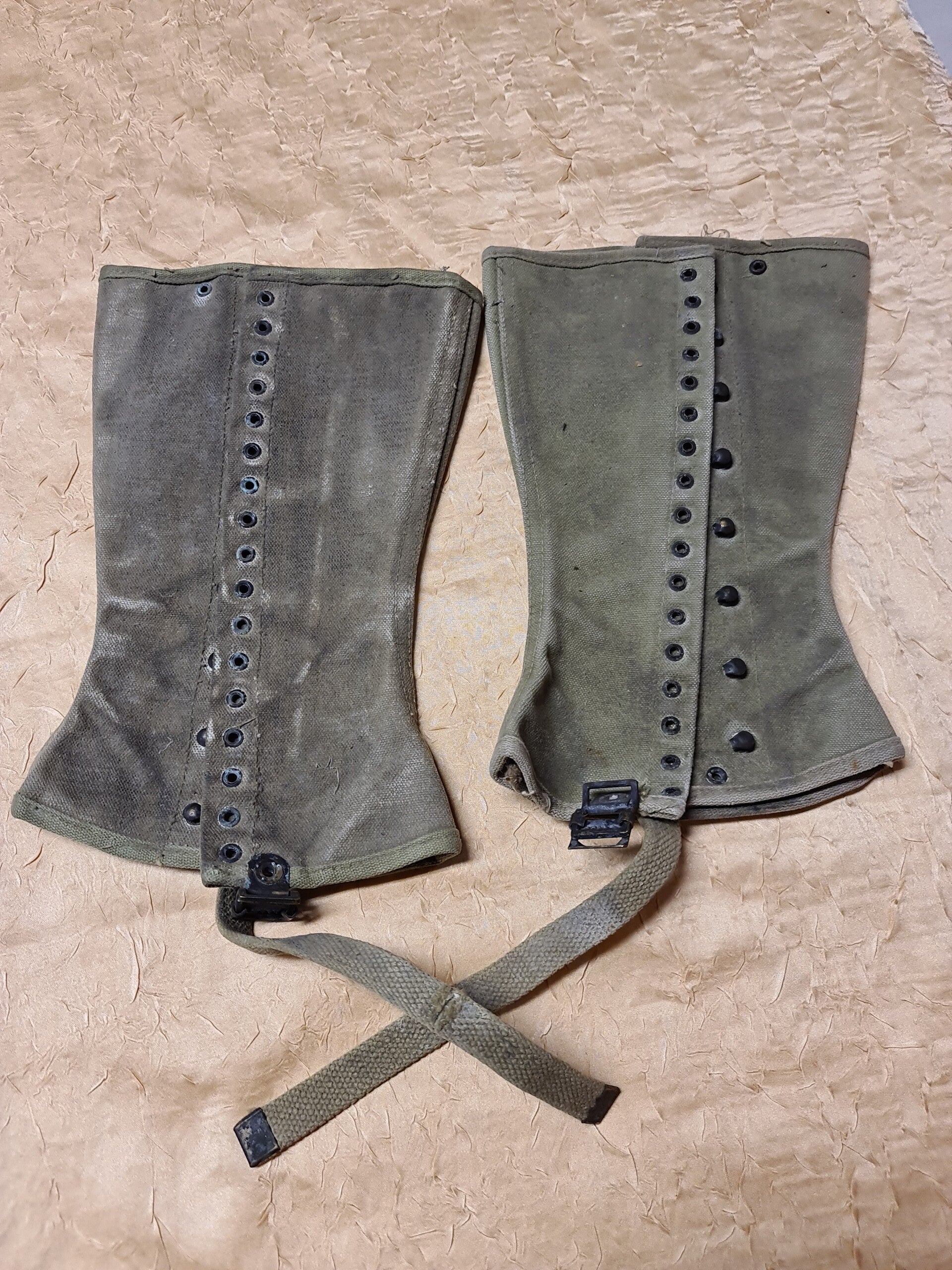 Solche Gamaschen gehörten zur Standardausrüstung der US-Infanterie im Zweiten Weltkrieg. Sie stehen für die praktische Kleidung der Soldaten, die unter verschiedensten klimatischen und geografischen Bedingungen einsatzbereit sein mussten.