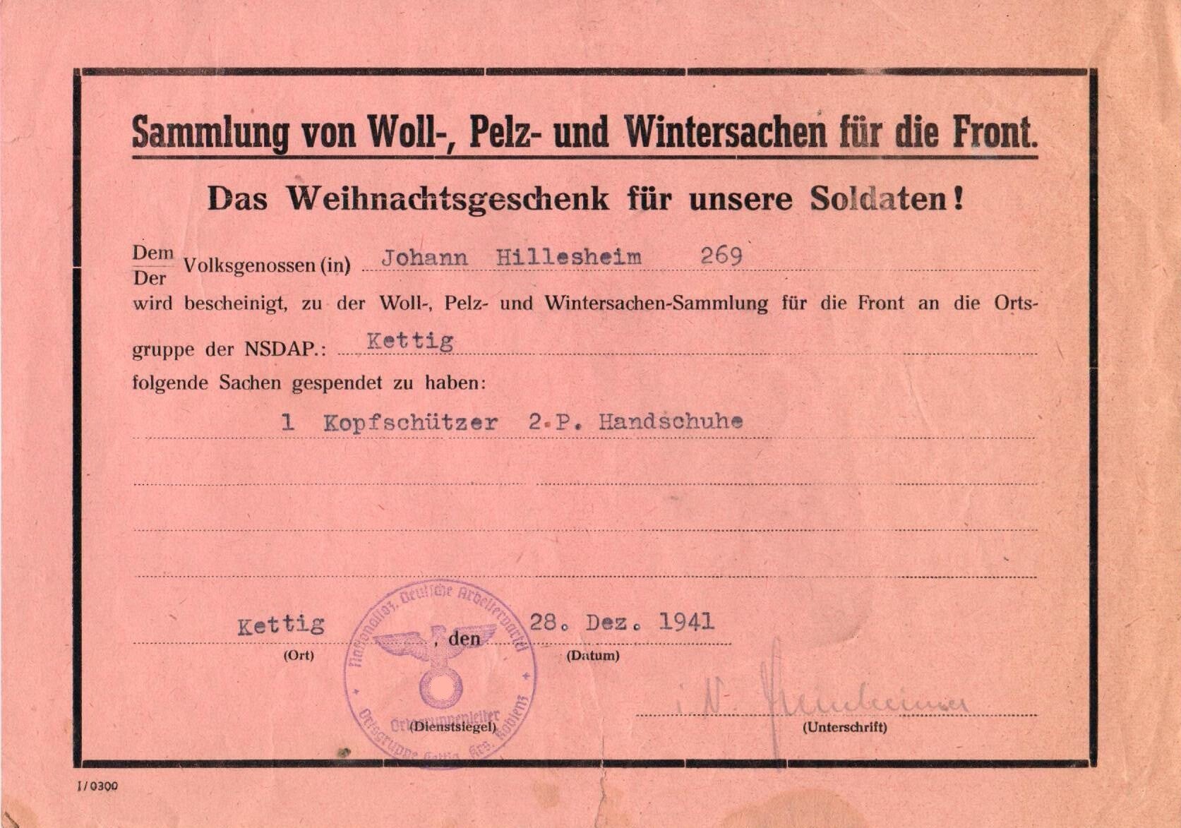 Es ergänzt die militärischen Fotos und Feldpostkarten von Peter Hillesheim um eine soziale, zwischenmenschliche Ebene, die den Krieg nicht nur als Kampfgeschehen, sondern als Lebenswirklichkeit zeigt.